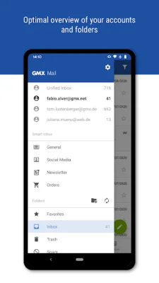 The GMX Mail app brings all the features of a GMX webmail account to your Android mobile device. With this official email app, you can easily access your free email account from anywhere. The app allows you to quickly find contacts, view, receive, and reply to messages with just a few taps. It offers unparalleled mobility and freedom for managing your emails on the go.