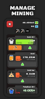 If you're looking to improve your mining game, this application is for you. With just a few clicks, you can manually mine for gold by clicking on the designated buttons on the map. The more gold you mine, the more you can develop your mine and grow your gold business.
