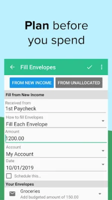 The app serves as a personal financial manager for those on-the-go, with optimized expense tracking for speed. Users can easily check their envelope and account balances, save for the future with goal and annual envelopes, and schedule transactions and envelope fills. The app also offers the ability to split expense transactions, make smart payee and category suggestions, and easily transfer funds between envelopes and accounts.