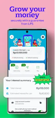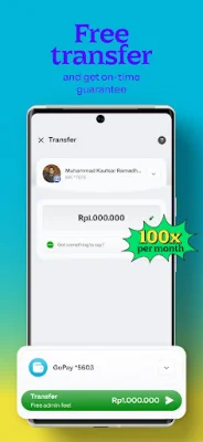 GoPay is a digital wallet application that offers a variety of convenient and secure financial services to its users. With GoPay, you can enjoy free transfers up to 100 times per month to any bank, including popular ones like BCA, BNI, BRI, and Mandiri, as well as e-wallets such as DANA, OVO, and ShopeePay. Plus, with the On-Time Guarantee, you'll receive free GoPay Coins if your transfer isn't processed within one minute. This makes it easy to split expenses with friends, send THR to relatives, and share donations with others through official channels.