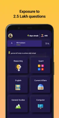 The app also addresses the lack of practice questions by providing a question bank with close to 2.5 lakh questions, including previous years' papers and updated current affairs. It covers a wide range of exams, including RRB, IBPS, SBI, RBI, LIC, NIACL, SSC, UPSC, and more. The app is constantly adding new exams to its list, making it a comprehensive platform for government exam preparation.