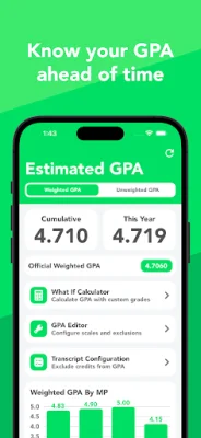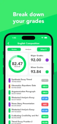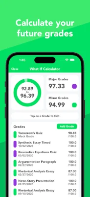 GradeWay also offers grade insights, allowing students to view class averages over time and track their own progress. The app also includes a "what if" calculator, which allows students to predict their average by adding mock grades and changing scores. This feature can help students set realistic goals for future assignments and exams.