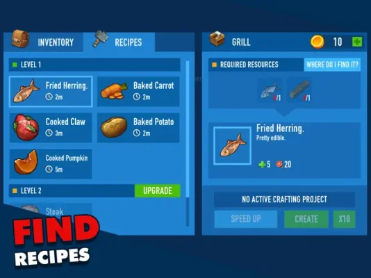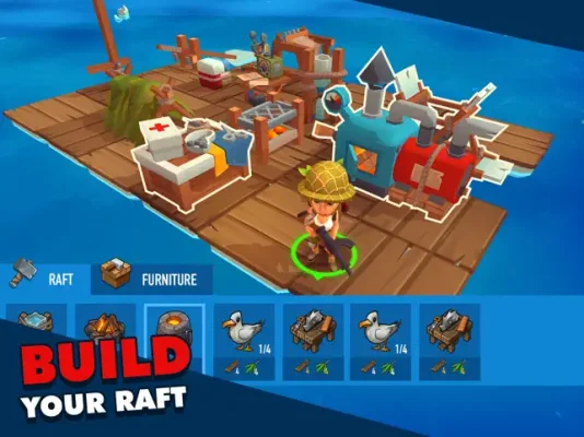 As you progress, you'll need to build your raft and gather resources from the ocean and islands. Use the advanced crafting system to create essential items and equipment, and discover unique recipes on the islands. Become a true survivor!