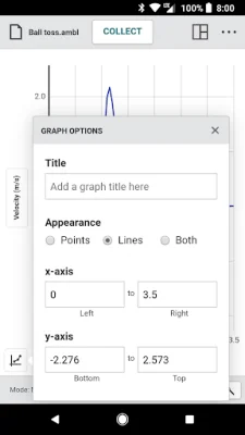 Collaboration and sharing are also key features of this application. Users can create text annotations and add graph titles, and can export graphs and data for printing and inclusion in lab reports. The application also allows for files to be saved to the cloud for exchange with Graphical Analysis on other devices, and data can be exported in .CSV format for analysis in spreadsheet software. Users can also adjust font sizes for easier viewing when presenting to a class.