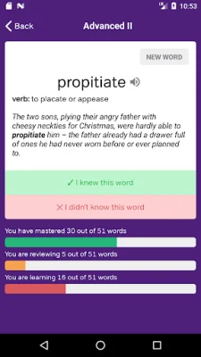 Magoosh's flashcard app uses a spaced repetition system, based on academic research that shows memories are formed through repeated exposure to new information. This means that words you are learning will reappear frequently, while words you already know won't be repeated. The word list is also limited to 1000, ensuring that you don't waste time learning unimportant words.