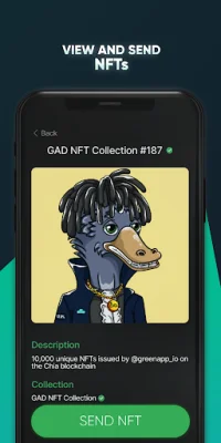 The app also offers a user-friendly interface for sending and receiving CAT and NFT tokens. This makes it easy for users to engage in transactions and manage their digital assets. The convenience of the Green Wallet interface makes it a top choice for those looking for a hassle-free way to handle their Chia network assets.