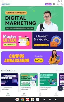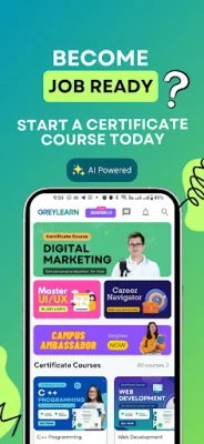 GreyLearn also provides a personalized career roadmap through its Career Navigator feature, helping learners align their goals with their dream job. The platform also offers a Campus Ambassador Program, where students can earn certificates, rewards, and GreyCoins, which can be used to unlock additional features and compete on leaderboards.