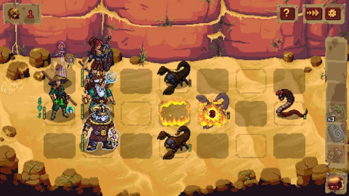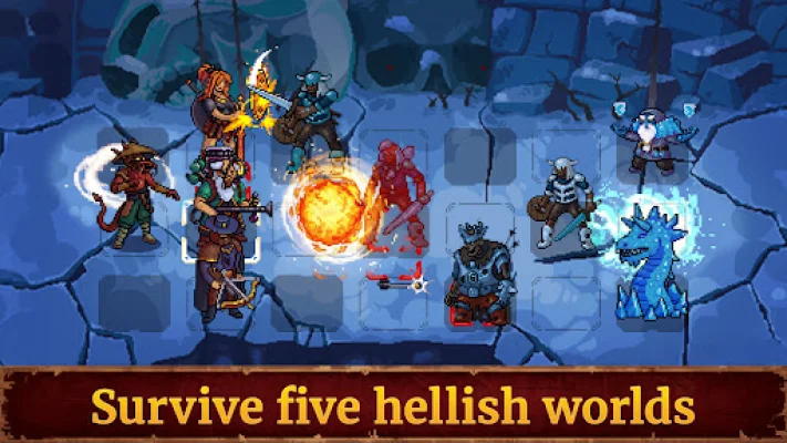 The game features a team of four heroes, with three fighting on the front line and the fourth recovering strength in the back. Each turn is centered around position swapping, with heroes moving from the backline to the front to unleash their ultimate abilities. Additionally, each hero has two unique stances that add even more depth to the gameplay. Players must also consider the four different damage types (Physical, Fire, Magic, and Death) and the strengths and vulnerabilities of each enemy in order to master the game's combat system.