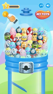 To start playing, simply touch and move the coin to the gumball machine. Once the coin is in the machine, a surprise egg will start falling and bouncing around. Children can then touch the surprise egg to open it and reveal a toy inside. The goal is to collect as many toys as possible by opening as many surprise eggs as you can.