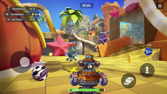 Guns & Balls: Online PVP Shooter is an exciting multiplayer game where you control a powerful combat robot armed with deadly weapons. The objective is to collect the most coins before time runs out, but be careful as other players will try to steal them from you. Engage in intense PvP battles, transform into a high-speed marble to escape danger, and use auto-aim technology to ensure precise shooting in the heat of battle. Be the last robot standing in this action-packed battle royale shooter!