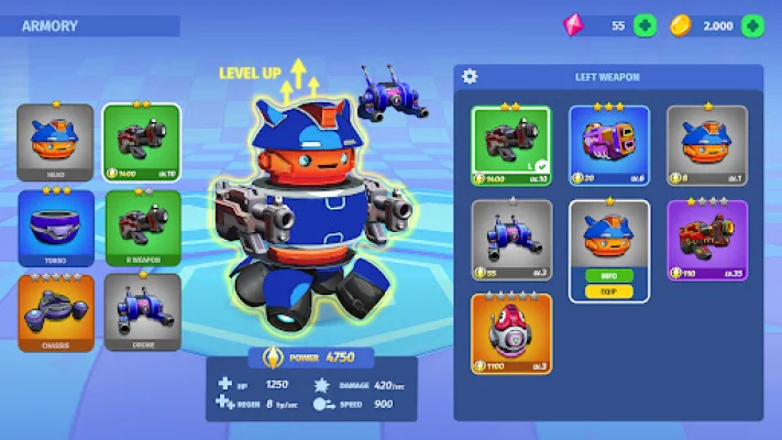 Earn XP and coins to upgrade your battle bot with powerful weapons and enhancements. Choose from a variety of weapons, such as miniguns, rocket launchers, and shotguns, to create a combat robot that matches your playstyle. With over 30 unique skins available, you can also customize your transforming battle robot with stunning cosmetic designs to stand out in the arena.