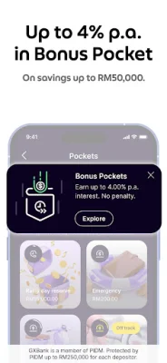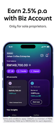 GXBank is a comprehensive banking application that offers a range of services for personal and business banking needs, as well as smarter spending options. With GXBank, users can easily manage their finances and enjoy peace of mind with built-in security features. For personal banking, GXBank offers FlexiCredit, a credit limit of up to RM150,000 with no cost. Users can also earn up to 4.00% p.a. on their savings up to RM50,000 with Bonus Pockets. This allows for flexible and convenient access to cash when needed. For business banking, GXBank offers GX Biz FlexiLoan, providing a business loan of up to RM150,000 with flexible repayment options from 2 to 36 months. Users can also open a GX Biz Account in minutes and earn 2.50% p.a. daily interest on their business deposits. GXBank also offers smarter spending options such as Road-Trip Ready, allowing users to renew car insurance and road tax in-app with just 3 taps. Travel Protected provides insurance coverage for various situations, from flight delays to scuba diving. Users can also enjoy unlimited 1% cashback on all overseas in-store payments with zero markups with the GX Card. For Grab users, GXBank offers up to 3x GrabCoins when using the app to pay for Grab services. With GXBank, users can also enjoy peace of mind with built-in security features. These include secure login with Face ID or fingerprint, instant control to freeze cards or lock accounts 24/7, and one-tap verification with GXsecure for secure transaction approvals. To learn more about GXBank and its services, users can visit www.gxbank.my. GXBank is a member of Perbadanan Insurans Deposit Malaysia, ensuring that deposits are protected by PIDM up to RM250,000 for each depositor. To access GXBank, users must have an Android device with version 12 and above. With its user-friendly interface and convenient features, GXBank is the perfect banking solution for modern individuals and businesses.