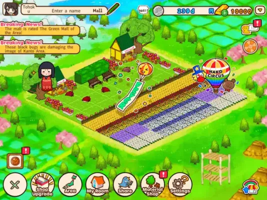 In addition to managing shops, players can also set up various cityscape items and decorations to create a lively environment in their mall. From floor tiles to vegetation and decorative objects, players have the freedom to design their mall according to their taste.