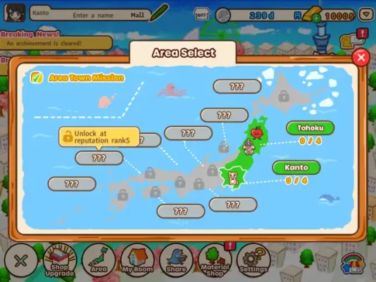 As players gain reputation, they can unlock new areas to expand their mall. The game also provides tips for players, such as remembering to upgrade shops, setting up a police box to keep suspicious characters away, and responding to requests from townspeople promptly. The game is recommended for players who enjoy the environment of local malls, traveling throughout Japan, creating malls according to their taste, and simulation games.