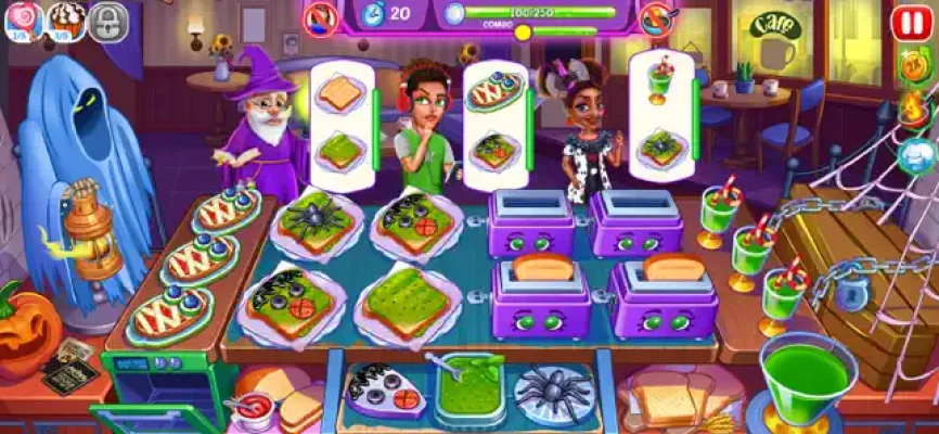 Get ready to experience a cooking craze like no other with this exciting application! As the mad chef of your own cafe, you'll have customers addicted to your delicious Halloween food games. With over 25 restaurants to choose from, featuring unique and mouth-watering dishes like burgers, desserts, and more, you'll have plenty of options to satisfy your customers' cravings. And with 1600+ levels to complete, you'll never run out of cooking madness to conquer.