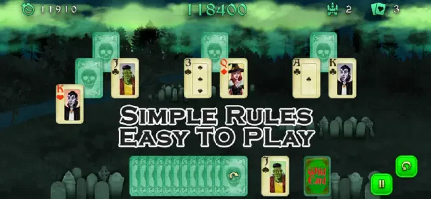 This version of our classic solitaire game has been given a spooky twist, just in time for Halloween. We've kept all the elements that made our previous game highly rated, including smooth gameplay, responsive controls, and easy-to-understand rules. But we've also added a frightfully fun theme, complete with spooky sound effects and ghoulish graphics.
