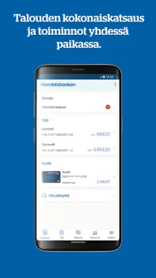 Mobiilipankki on sovellus, jonka avulla voit hoitaa pankkiasioitasi kätevästi ja nopeasti suoraan älypuhelimellasi. Sovelluksessa voit kirjautua sisään joko PIN-koodilla tai Handelsbankenin Vahvista-sovelluksella, joka tarjoaa lisäturvaa pankkiasioiden hoitoon. Etusivulta näet kätevästi tiliesi saldon ja uusimmat tilitapahtumat, ja voit myös siirtää rahaa ja tehdä maksuja helposti ja nopeasti.