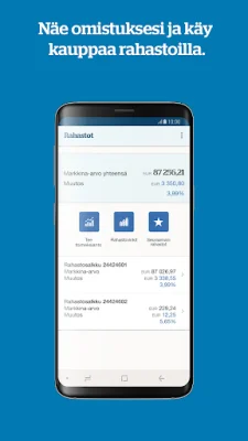 Mobiilipankin avulla voit myös hoitaa sijoituksiasi, kuten ostaa, myydä ja vaihtaa Handelsbankenin rahastoja sekä kuukausisäästää niihin. Voit myös skannata laskujen QR- tai viivakoodeja sekä virtuaaliviivakoodeja ja hyväksyä e-laskuja sekä tarkastella niiden yksityiskohtia.