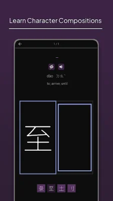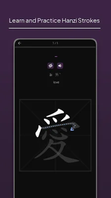 Character Strokes Writing also offers a voice feature, utilizing text-to-speech to help users learn pronunciation in both Chinese and Taiwanese. This can be a valuable tool for improving speaking and listening skills. The app also includes a dictionary feature, allowing users to look up individual Chinese characters and access information such as pinyin, zhuyin, definition, radical, etymology, strokes animation, sound, and immediate practice mode.