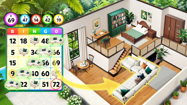 Experience the classic game of Bingo with a unique twist in this exciting application. With smooth and easy-to-learn gameplay, players can mark their numbers, complete lines and patterns, and shout "Bingo!" to win. But that's not all - use your coins and gems to redesign and upgrade rooms in your very own virtual house.