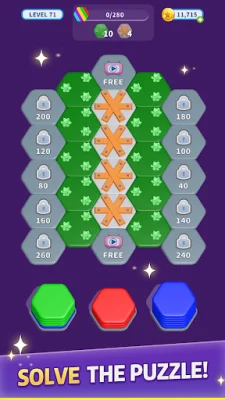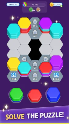 To play, simply drag the hexagonal tiles and organize them by color to clear space. As you progress through the levels, the puzzles become more challenging, requiring strategic planning to achieve higher scores. But don't worry, you can use power-ups to help you overcome tricky puzzles with ease.