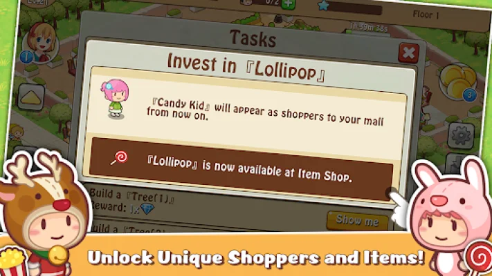 Be the ultimate tycoon by designing and managing your own mall in this exciting game! You have the power to create new floors, fill them with shops, special attractions, and amenities to attract shoppers. As you increase the appeal of your shops, you'll see cute interactions between shoppers and store owners. Expand your mall, upgrade stores and services, and invest to earn coins. And don't forget to run fever sales to make easy money!