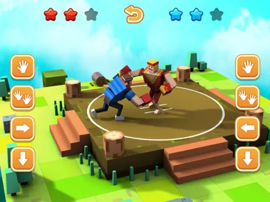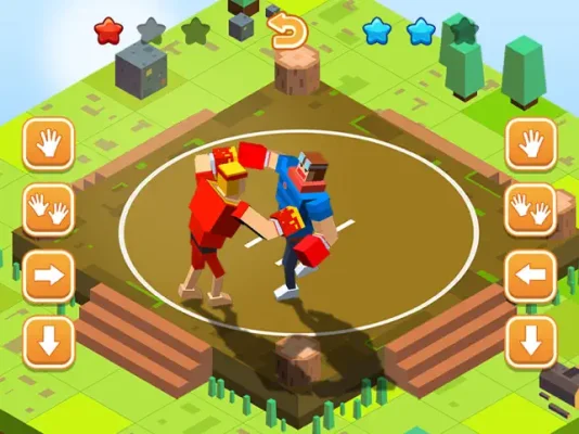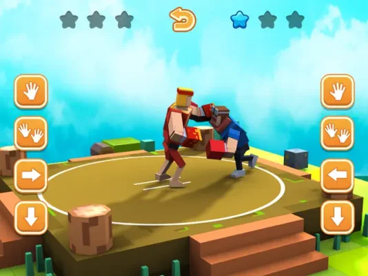 This is a fun and entertaining game called Sumotori Game, where you control a paper robot and engage in sumo-style fights. Unlike traditional sumo matches, you can use unconventional tactics like charging at your opponent like a bull or taunting them with your hands. You can also use your weight to your advantage by jumping and causing the floor to shake, making your opponent lose their balance and fall. The only rule in this game is to make your opponent fall down, so feel free to be as creative and rule-breaking as you want.