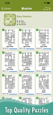 Hashi offers 200 free puzzles, with an extra bonus puzzle released each week. The puzzles range in difficulty from very easy to extremely hard, and the grid sizes can go up to 24x32. The puzzle library is continuously updated with new content, and all puzzles are manually selected for top quality. Each puzzle has a unique solution, providing hours of intellectual challenge and fun.