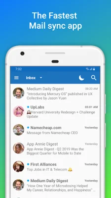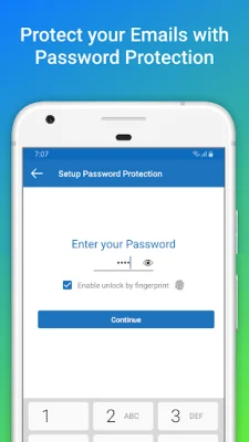 The app offers a dark mode feature to help protect your eyes from glare, as well as multiple themes with different colors to choose from. For added security, you can use the app lock feature with a PIN code. The app also supports multiple accounts, so you can easily switch between different email boxes.