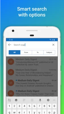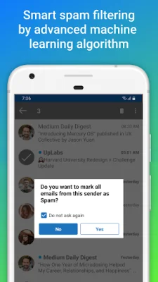 The app also has smart spam filtering, which allows you to permanently block spammers. You can also use the multi-option mail search feature to easily find emails by sender, recipient, or subject. The app also supports adding a signature automatically when sending emails. You can also filter your emails by unread, flagged, or attached messages.