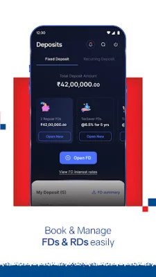 Managing finances is made effortless with the HDFC Bank App. Users can easily manage their term-saving deposits and set up recurring plans. They can also apply for personal loans, home loans, and manage credit card services directly from the app, with a seamless application process. The app also offers a wide range of insurance options, making it easy to protect yourself and your loved ones with just a few taps.