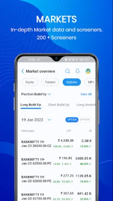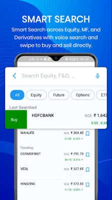 The app also offers a multi-asset class portfolio, allowing you to trade in large, mid, and small-cap stocks, invest in mutual funds, index funds, IPOs, and other demat and trading securities. It also provides access to equities, derivatives, debentures, F&O, commodities, ETFs, and more, making intraday trading easier and more accessible.