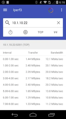 For performance testing, the app offers Iperf (v2 and v3) for running TCP and UDP tests, as well as a Ping feature for sending ICMP packets to a single IPv6/v4 address. Users can also perform a Ping Sweep to send ICMP packets to an entire subnet range. Traceroute and Progressive Traceroute are available to find the route packets take to reach a destination, and the app also includes a Port Scan feature for scanning custom or pre-defined TCP ports on any IPv6/v4 server.