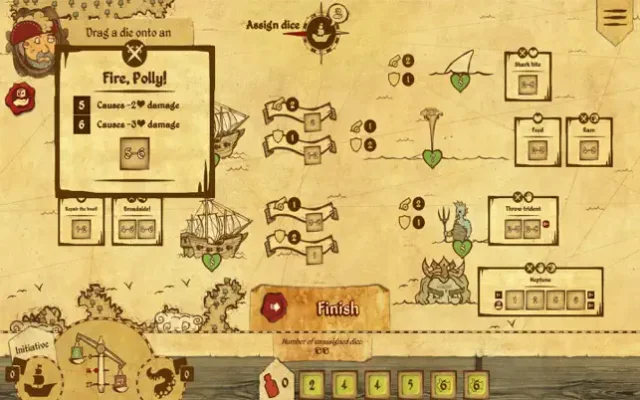 The gameplay of Here Be Dragons is centered around a unique Dice Activation System. Players must use this system to attack enemies, heal their crew, and upgrade their fleet. They can also collect and use Command Points to turn the tide of the encounter. The game also features an ancient, living map that is full of dangerous creatures that will try to devour the players. These creatures include leviathans, krakens, predatory whales, and lustful mermaids. Players must also confront tritons and even awaken Dagon, the ancient god of the sea.