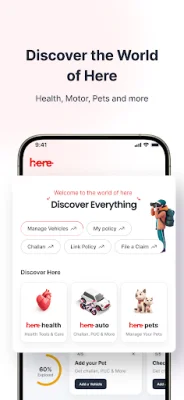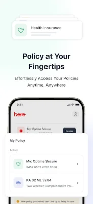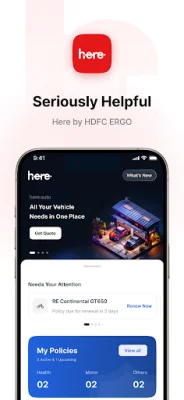 Simplify your life with Here, the one-stop app for managing your insurance, vehicles, health, pets & more! With Here, you can easily access and manage all your HDFC ERGO policies, including health, car, bike, travel, cyber, and home insurance. You can also purchase new policies directly through the app with just a few clicks. Plus, you can conveniently submit and track claims and download policy documents and tax certificates anytime.