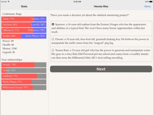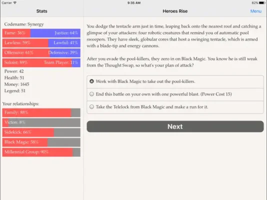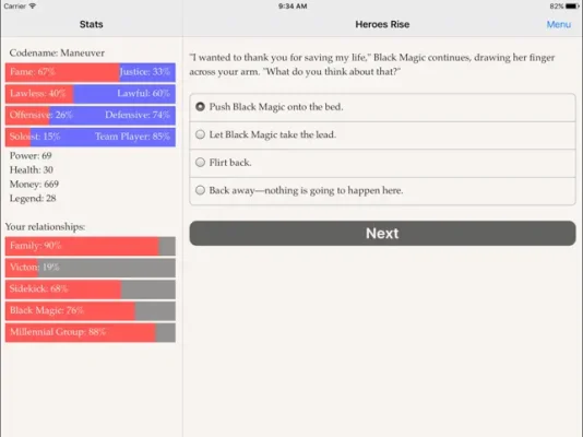 "Heroes Rise" is an exciting interactive novel that puts you in control of the main character. Set in a world where Powered heroes are the biggest celebrities, your ultimate goal is to join the A-List. However, to achieve this, you must first take down evil Powered gangs, compete with deadly rivals, choose a worthy sidekick, team up with famous champions, and prove yourself as a true hero in Millennia City.