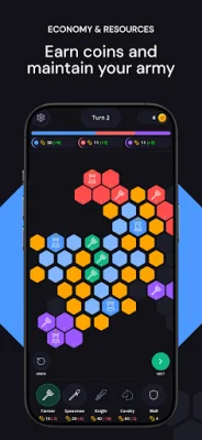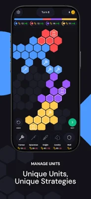 Hex Wars is the ultimate turn-based strategy game for mobile devices that allows players to command their own kingdom, outsmart their rivals, and conquer a hex map. The game challenges players to think tactically with every move, without requiring an internet connection.