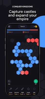Players must deploy their forces on a hexagonal battlefield and capture enemy castles to expand their empire. Each turn is crucial in this deep turn-based strategy experience. It is important to manage resources wisely, expand territory, and defeat opponents before they defeat you.