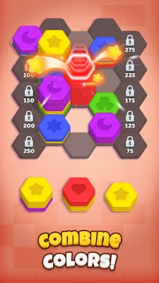The gameplay is simple yet challenging - players must drag and drop hexagonal tiles to sort and stack them on the board. By merging hexagons of the same color, players can eliminate them and earn points. However, they must plan their moves carefully to avoid running out of space. Creating combos and chain reactions can also earn bonus points and high scores. As players collect points, they can unlock decorations and customize their buildings, adding a fun element of personalization to the game.