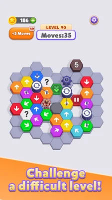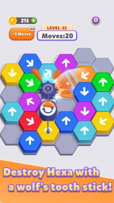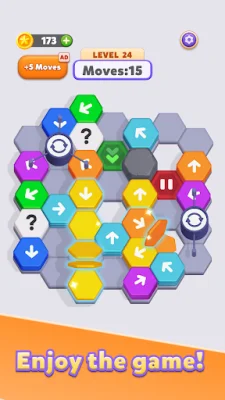The core gameplay of Hexa Run - Block Puzzle is all about mastering the art of stack control. By tapping on hexagonal tiles marked with arrows, you can move them in the indicated direction and out of the stack. The rules are easy to understand, but the order in which you move the tiles is crucial. Planning your steps carefully is essential, as one wrong move can lead to a deadlock and waste your valuable moves. Special obstacles like direction changers and pause zones add an element of unpredictability and test your adaptability.