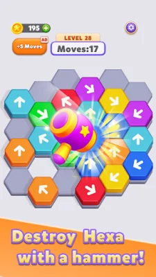 The game also features a progressive journey from experience to mastery. With a wealth of original levels that are continuously updated, limited-time events, and themed challenges, there's always a new puzzle to solve. The difficulty gradually increases as you progress, with early stages helping you get familiar with the rules and later levels introducing complex stacking and multiple obstacles. The sleek hex tile designs, vibrant colors, and smooth animations make every move a visual treat. Plus, you can play anytime and anywhere with the auto-save and pause-and-resume features.