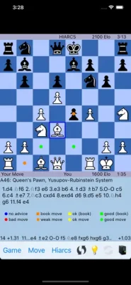 HIARCS Chess offers a range of realistic opponent strengths and playing styles, catering to players of all abilities from beginners to Grandmasters. On weaker levels, HIARCS will make human-like mistakes appropriate to the level of play, allowing for a more realistic and challenging experience. The integrated coach feature provides advice, assessments, and alerts to help you learn and improve quickly. Additionally, HIARCS tracks your chess performance and provides an Elo rating to monitor your progress.