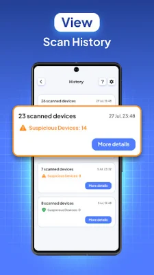 For added security, our app also offers a detail scan feature, allowing you to gather all the information you need about detected devices. This ensures that your space is completely safe from any hidden cameras. Our app is constantly updated with the latest technology to provide the most effective detection methods.