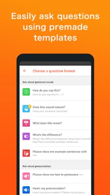Asking questions on HiNative is made simple with their question formats, which automatically translate your questions into other users' native languages. You can even upload pictures of signs, menus, or other text for help with translation. HiNative also allows you to ask about countries and cultures, making it a valuable resource for travelers or those moving abroad.
