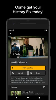 History Fix is a membership-based application that offers unlimited streaming of unique history-related content. The app features a wide range of rare documentaries, biographies, and narratives that were originally created for National Parks and Museums around the world. Users can also access behind-the-scenes footage, expert commentaries, and additional follow-up videos for many programs on the site. One of the main benefits of using History Fix is the opportunity to discover and learn about little-known achievements by both well-known and lesser-known individuals who have played significant roles in history. The app regularly adds fresh content, ensuring that users always have something new to explore. Unlike traditional TV channels, History Fix does not interrupt its content with commercials or ads, providing a seamless viewing experience. Users also have the option to download content within the app and watch it offline on their smartphones or tablets, making it convenient for those who are away from Wi-Fi. The app also offers a "My List" feature, allowing users to save videos to watch later. This is especially useful for those who want to use the material for research or personal entertainment while visiting parks, battlefields, or other historical sites. To access all features and content, users can subscribe to History Fix on a monthly or yearly basis with an auto-renewing subscription. The pricing may vary by region and will be confirmed before purchase. Subscriptions will automatically renew at the end of their cycle, but users can manage their subscriptions and cancel auto-renewal at any time. All payments are made through the user's Google Account and can be managed under Account Settings. Any unused portion of a free trial will be forfeited upon payment. Cancellations can be made by disabling auto-renewal. In order to use History Fix, users must agree to the Terms of Service and Privacy Policy, which can be found on the app's website. With its vast collection of unique and commercial-free content, History Fix is the perfect app for those looking to satisfy their curiosity and expand their knowledge of history. So why wait? Come get your History Fix today!