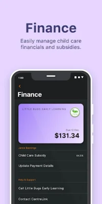 The app also simplifies child care financials by providing an easy-to-manage platform. Parents can quickly see how much child care subsidy they are receiving and when payments are due, making it easier to stay on top of their child care expenses.