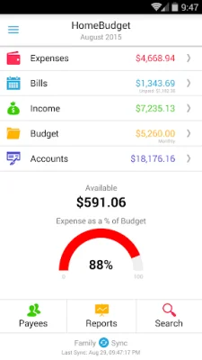 This is the lite version of the 'Home Budget with Sync' app, which is a paid application that helps you track your expenses, income, bills, and account balances. It is available on mobile (Android, iPhone/iPad) and desktop (Windows, Mac OS) devices, with the added feature of instant data sync between the two versions.