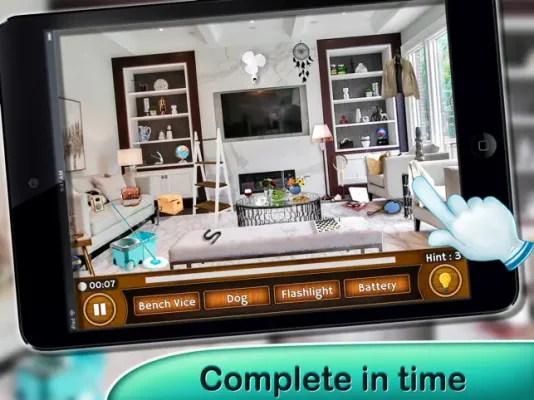 Home Interior Hidden Objects offers two modes of play: Time Mode and Classic Mode. In Time Mode, you must find all the objects within a certain time limit, while in Classic Mode, you can take your time and enjoy the game at your own pace. The bottom panel displays the name of the object you are searching for, making it easier to find.