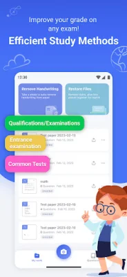 This application is designed to help students study more efficiently and prepare for exams with ease. It offers a variety of features to make studying and organizing notes easier. One of the main features is the ability to take a picture of homework or test papers and have the handwriting automatically erased and restored to its pre-written state. This can save time and effort for students who may have messy or incorrect notes.