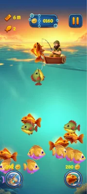 In Hooked Splash, you take on the role of the fisherman and use your skills to catch as many fish as possible. The gameplay is simple yet challenging - tap to cast your hook, stop the bar to choose the depth, and swipe to catch fish on the way up. Each catch earns you coins, which you can then use to upgrade your gear in the Tackle Shop. With deeper casts, rare fish, and serious splash power, you'll be well on your way to becoming a fishing master.